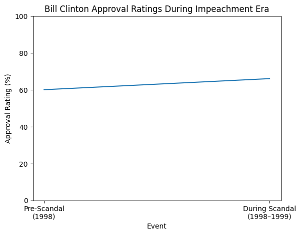And during the Bill Clinton impeachment era, approval rose not because of 1998 airstrikes but because voters were comfortable separating personal scandal from performance — especially when the economy was strong.